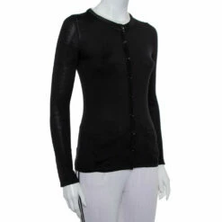 Carolina Herrera Black Knit Contrast Neck Detail Button Front Cardigan XS Women