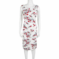 CH Carolina Herrera Black & Red Abstract Printed Silk Satin Brooch Detail Maxi Dress M Women