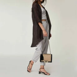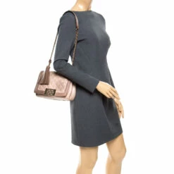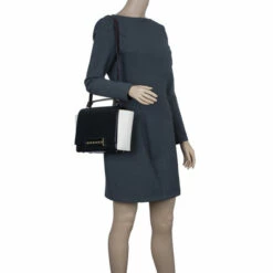 Carolina Herrera Beige/Silver Tweed And Fabric Faux Pearl Embellished Shoulder Bag Women
