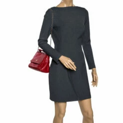 Carolina Herrera Red Leather Minuetto Flap Top Handle Bag Women