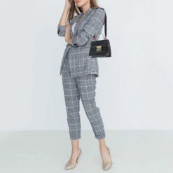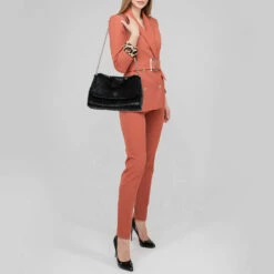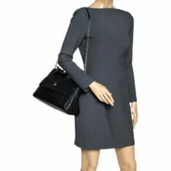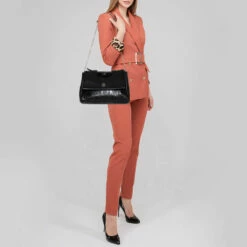 Carolina Herrera Black Leather Flap Tassel Top Handle Bag Women