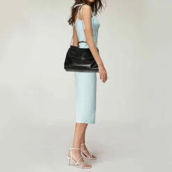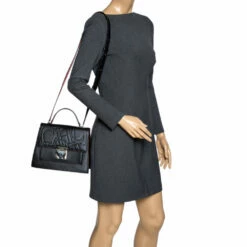 Carolina Herrera Black Embossed Leather Top Handle Bag Women