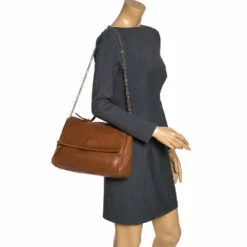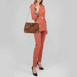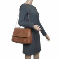 Carolina Herrera Brown Leather Metal Frame Top Handle Bag Women