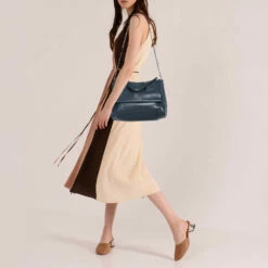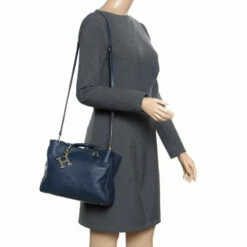 Carolina Herrera Navy Blue Leather Minuetto Top Handle Bag Women