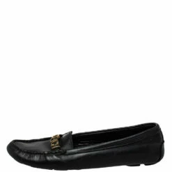 Carolina Herrera Black Leather Logo Detail Slip On Loafers Size 38 Women