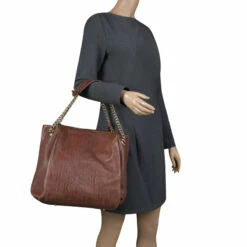 Carolina Herrera Brown Monogram Leather Top Handle Bag Women
