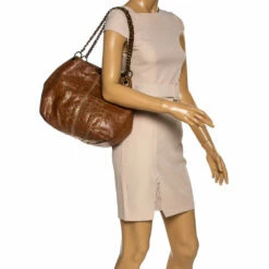 Carolina Herrera Brown/Red Coated Canvas And Leather Small Carry On Bandoulière Bag Women