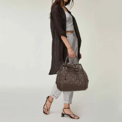 Carolina Herrera Dark Brown Quilted And Monogram Canvas And Leather Logo Flap Shoulder Bag Women
