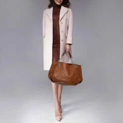 Carolina Herrera Brown Embossed Leather Top Handle Bag Women