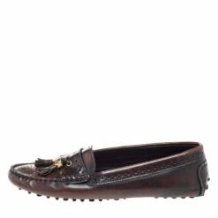 Carolina Herrera Two Tone Brogue Leather Logo Charm Slip On Loafers Size 39 Women – Burgundy