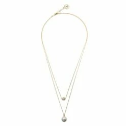 CH Carolina Herrera Faux Pearl Gold Tone Double Chain Necklace Women