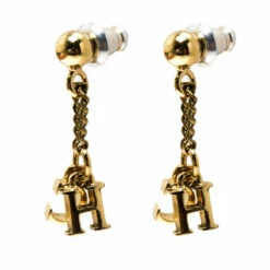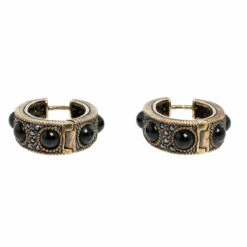 Carolina Herrera Black Crystal Resin Gold Tone Hoop Earrings Women
