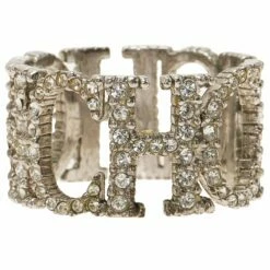 CH Carolina Herrera Crystal Studded Logo Silver Tone Ring Size 57 Women