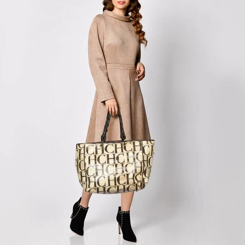 This exquisitely-designed tote from the house of Carolina Herrera has been crafted in monogram-coated canvas and leather. The bag is equipped with two braided handles and brass-tone hardware. A roomy fabric-lined interior houses a zip pocket.