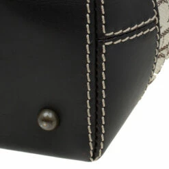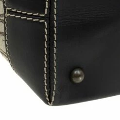 This Carolina Herrera Tote is sure to grab attention at the beach or by the pool or for your summer day outs. Carry your world around with you in this spacious canvas bag, with CH prints all over. The brown leather trimming goes around the bottom of the bag and through the middle to extend into a sturdy double handle.