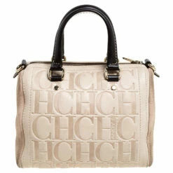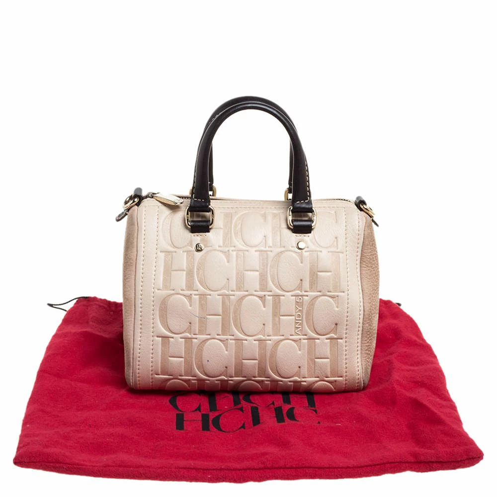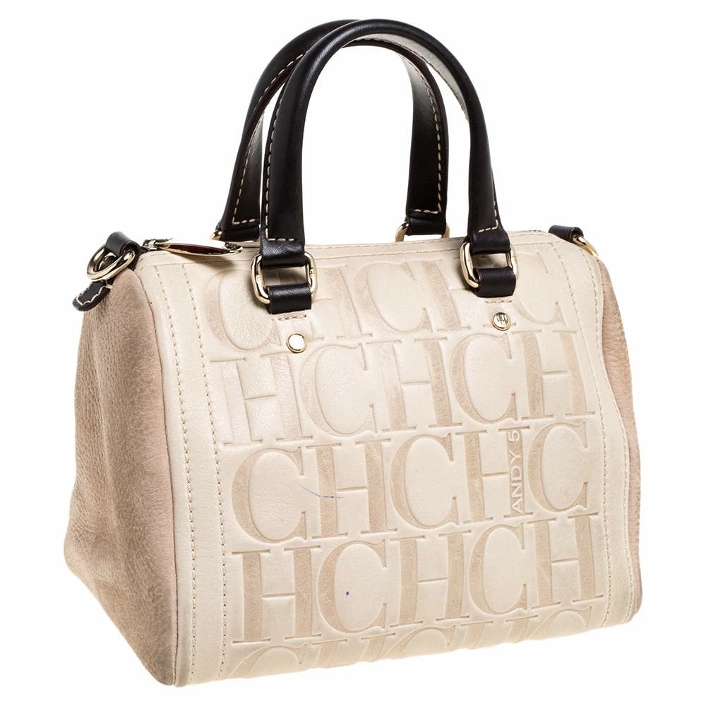 A truly elegant piece to add to your collection, this Andy Boston Bag by Carolina Herrera comes crafted from beige leather and styled with monogram embossing all over. It features a top zip closure, two handles, protective metal feet, and a spacious canvas interior to house your essentials. This bag is a creation for all occasions.