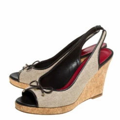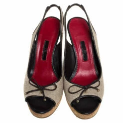 Set on 10 cm cork wedge heels, these Carolina Herrera sandals offer the right mix of comfort and style. They have been crafted from beige canvas and detailed with leather trims. They feature an open toe silhouette and delicate bows on the uppers and come equipped with slingbacks and leather insoles. They’ll look great with a lot of your outfits.