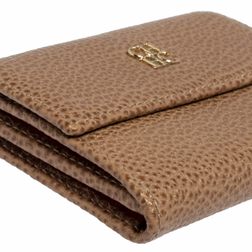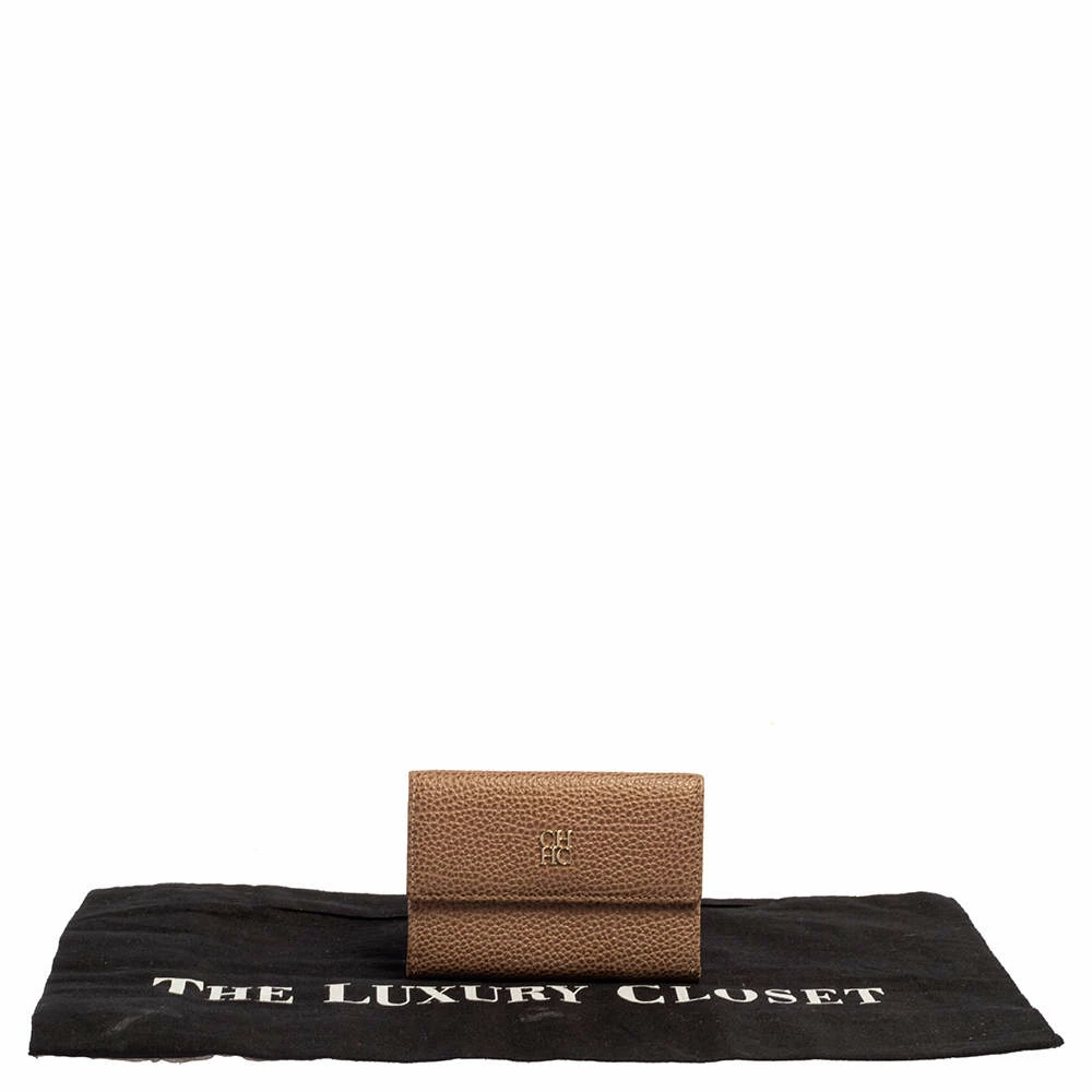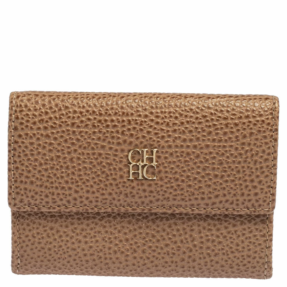 Keep your monetary essentials organized in style with this wallet from Carolina Herrera. It is crafted from beige grained leather and flaunts the brand logo on the front flap. The wallet features compartments and multiple slots for your cash and cards.