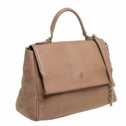 This Minuetto bag from the house of Carolina Herrera is something you would go to season after season. It has been crafted from beige leather and features a flap style. It comes with a chain shoulder strap in addition to a top handle. The relaxed bag opens to a spacious interior that can easily hold your day to evening essentials.