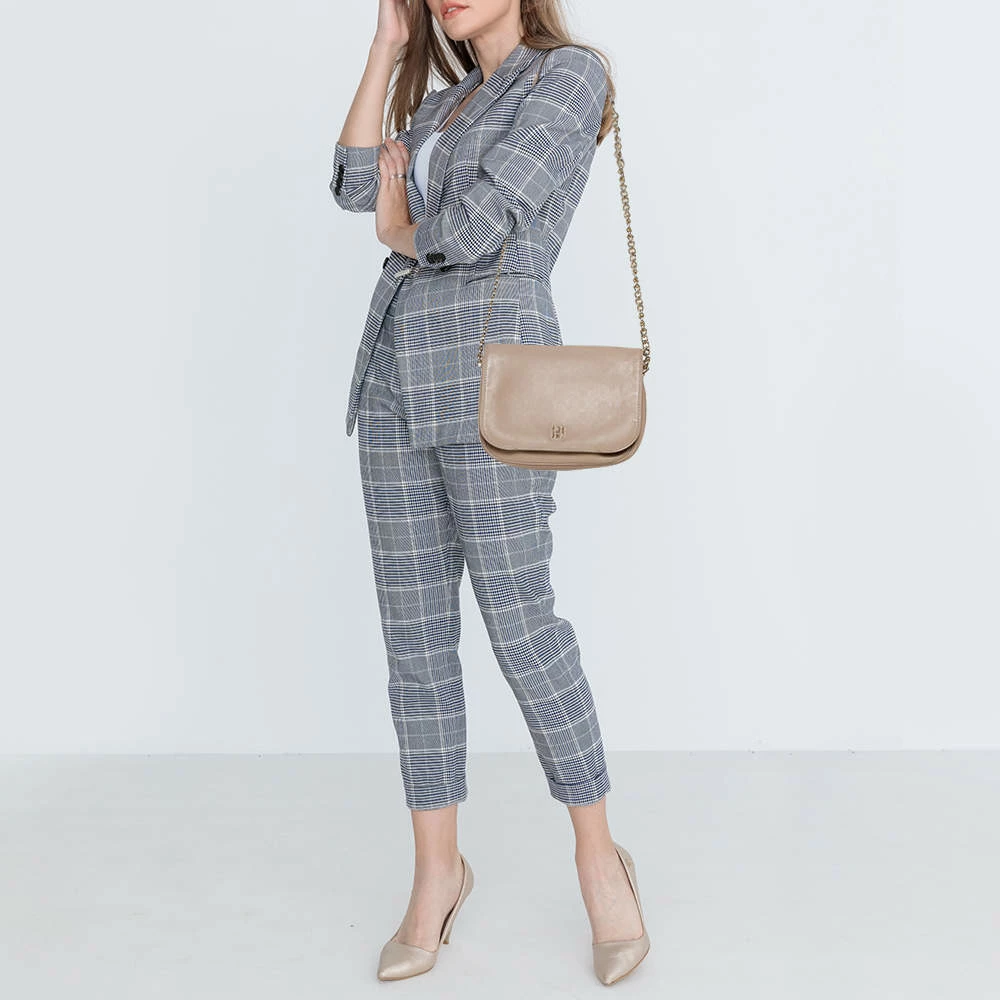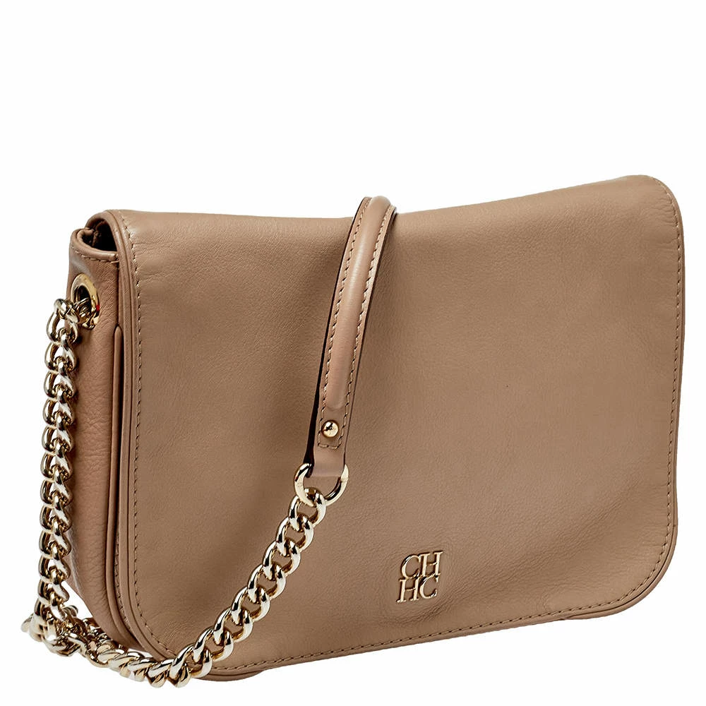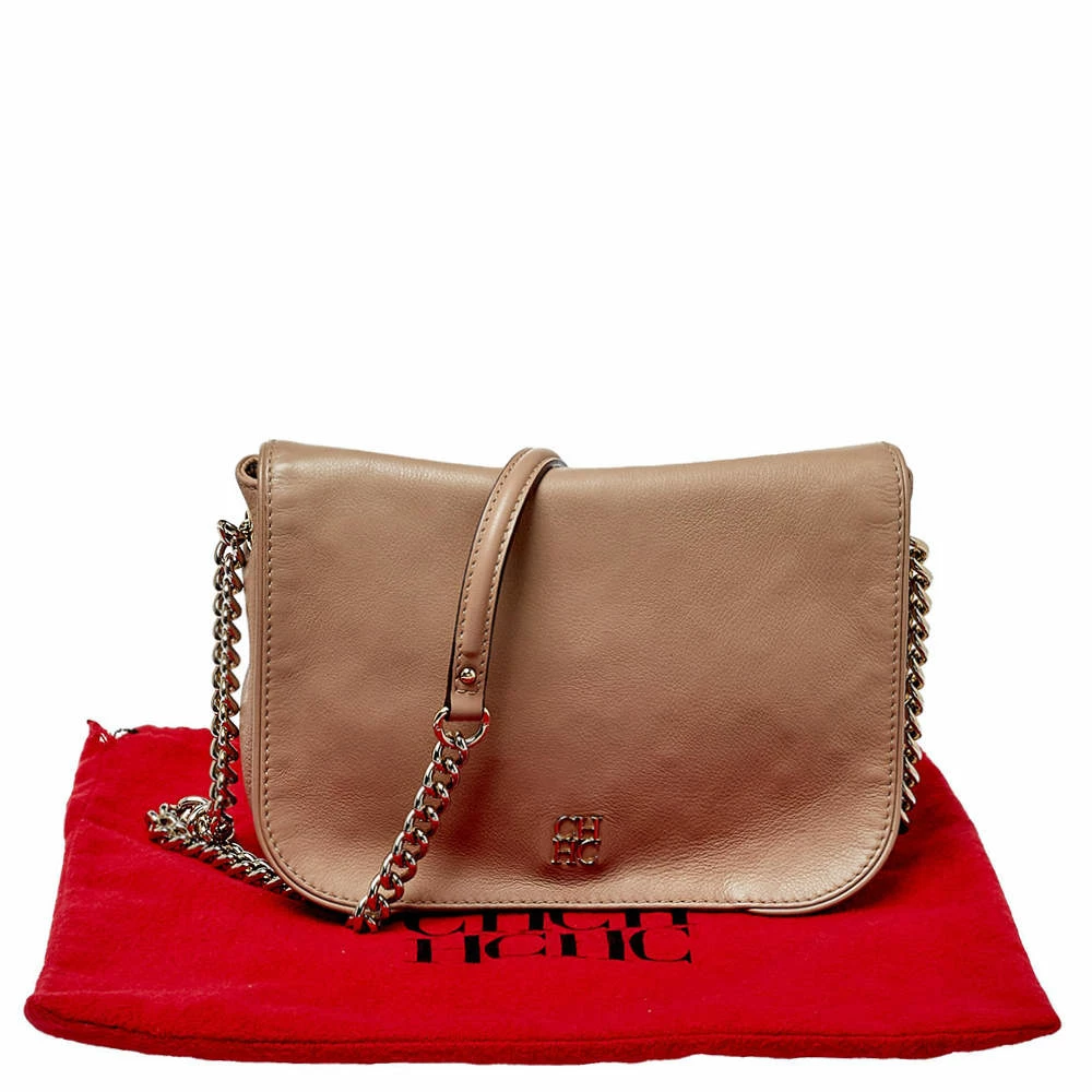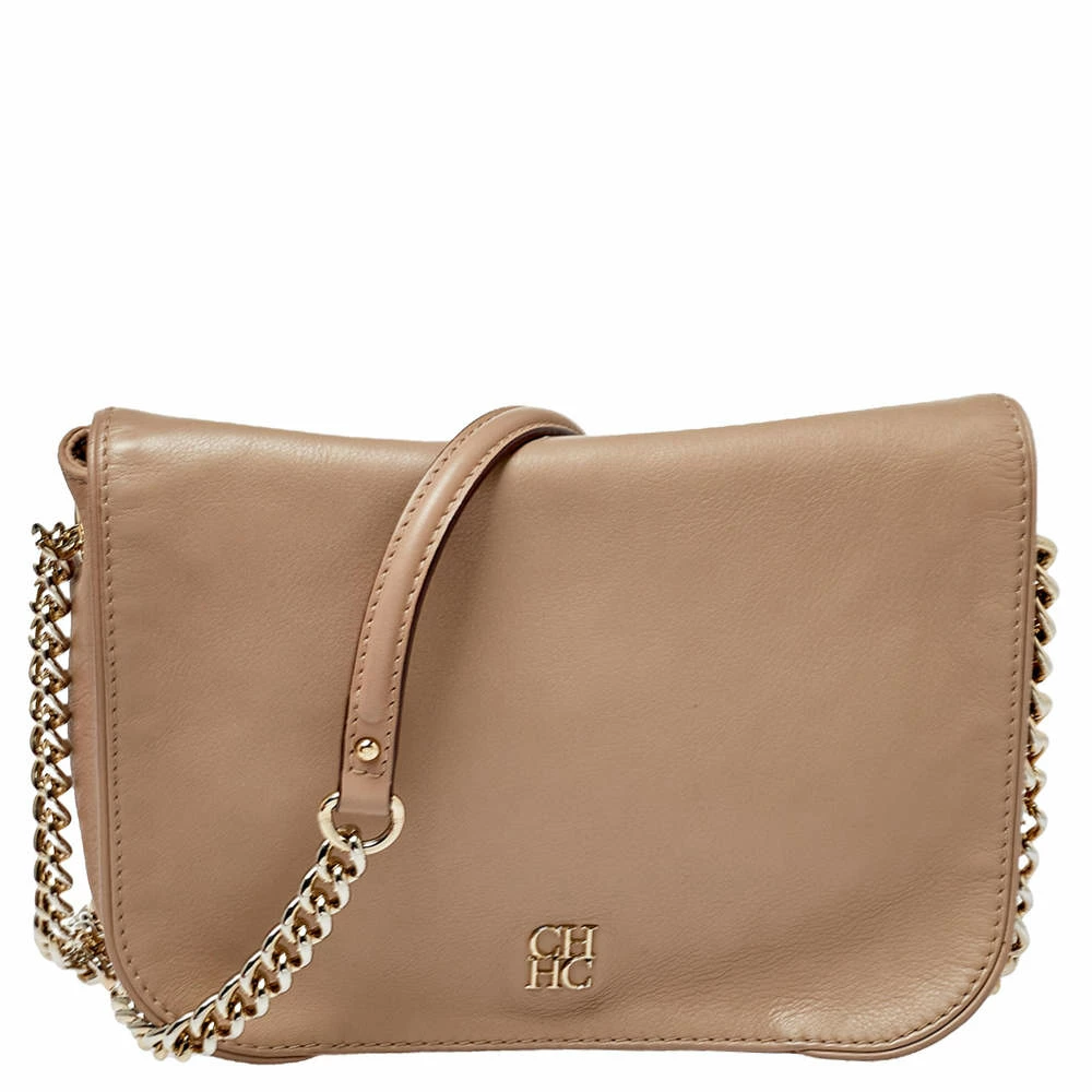 The house of Carolina Herrera has exclusively designed this elegant bag for you. It has been crafted from beige leather and adds a chic appeal to any ensemble. It has a front flap with the ‘CH’ logo that opens to a fabric-lined interior. It is complete with a shoulder strap and detailed with gold-tone hardware.