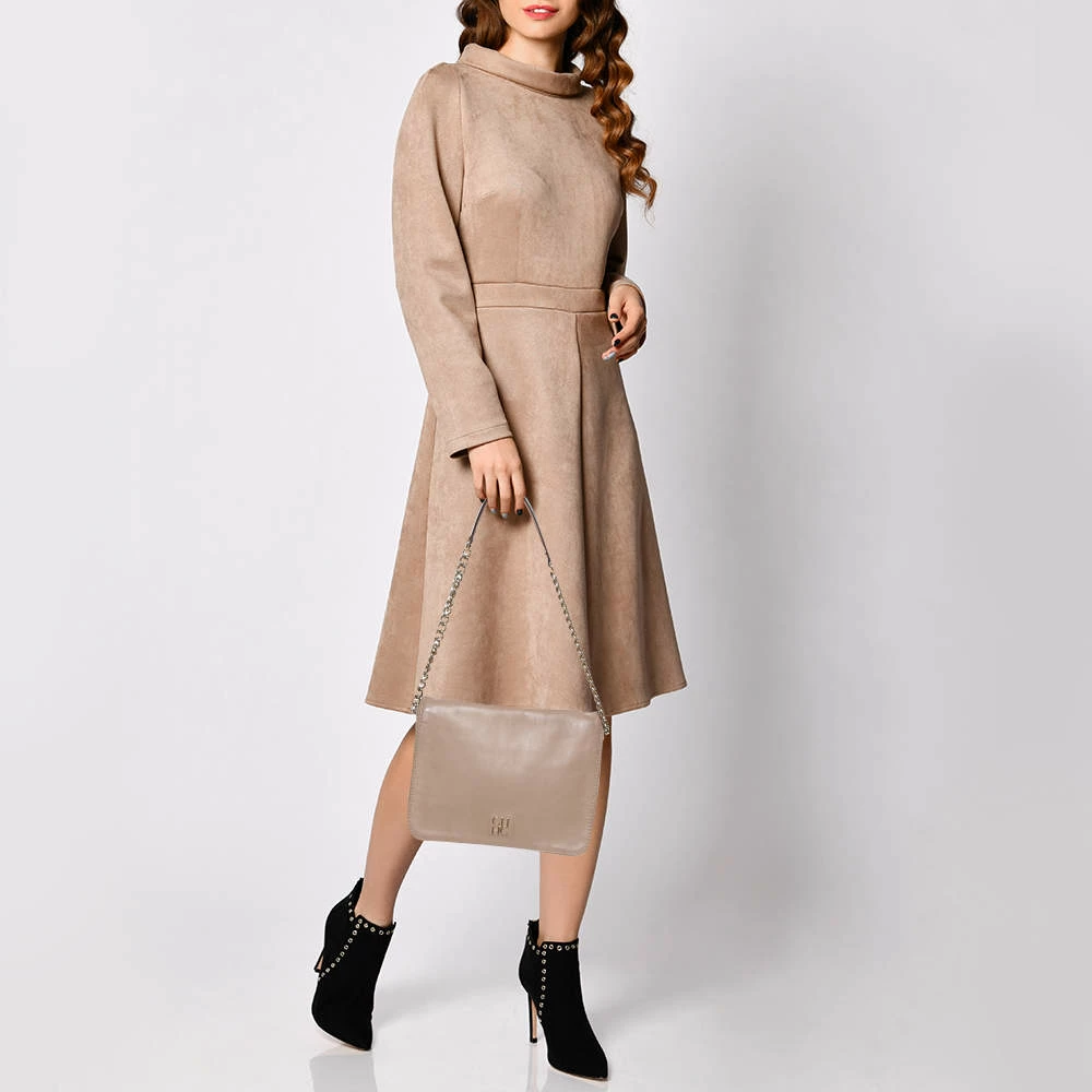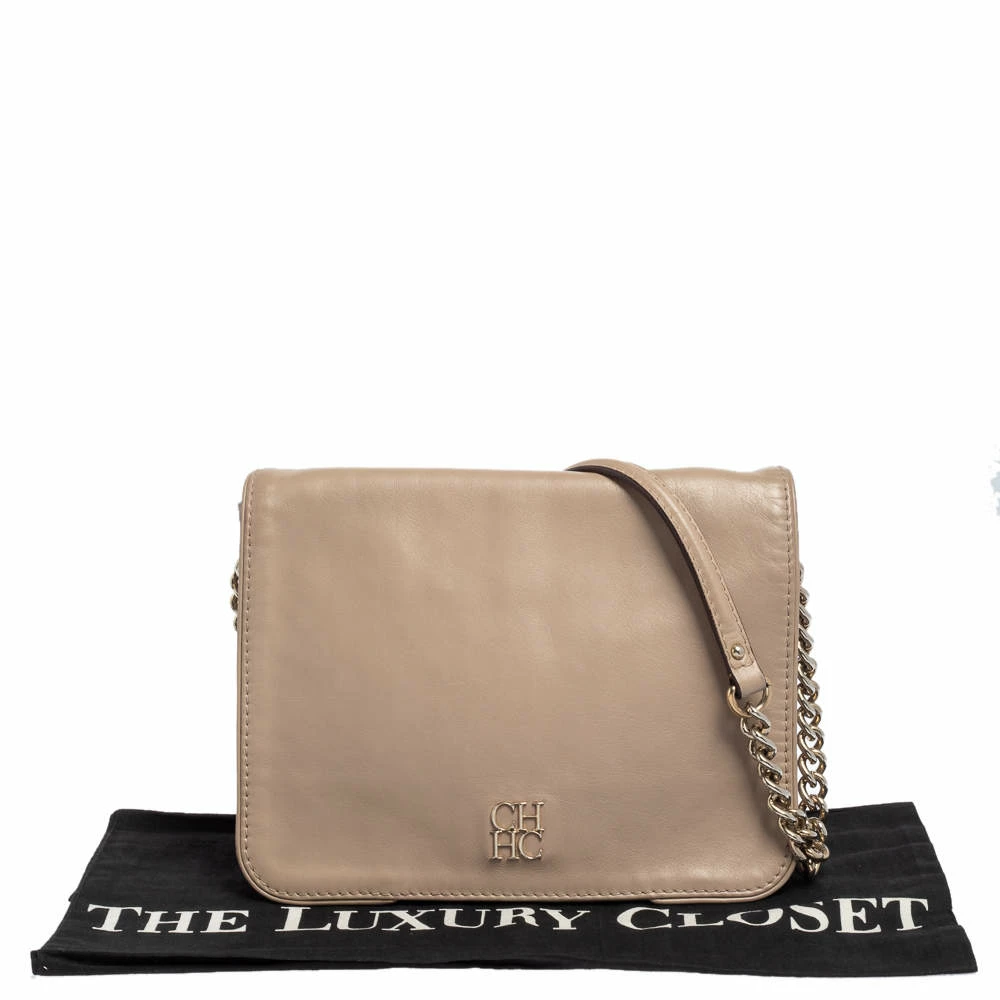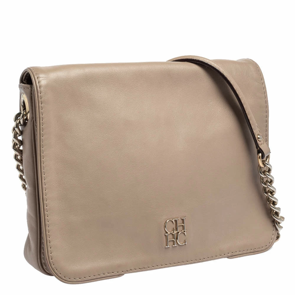 The house of Carolina Herrera has exclusively designed this elegant bag for you. It has been crafted from beige leather and adds a chic appeal to any ensemble. It has a front flap with the ‘CH’ logo that opens to a fabric-lined interior. It is complete with a shoulder strap and detailed with gold-tone hardware.