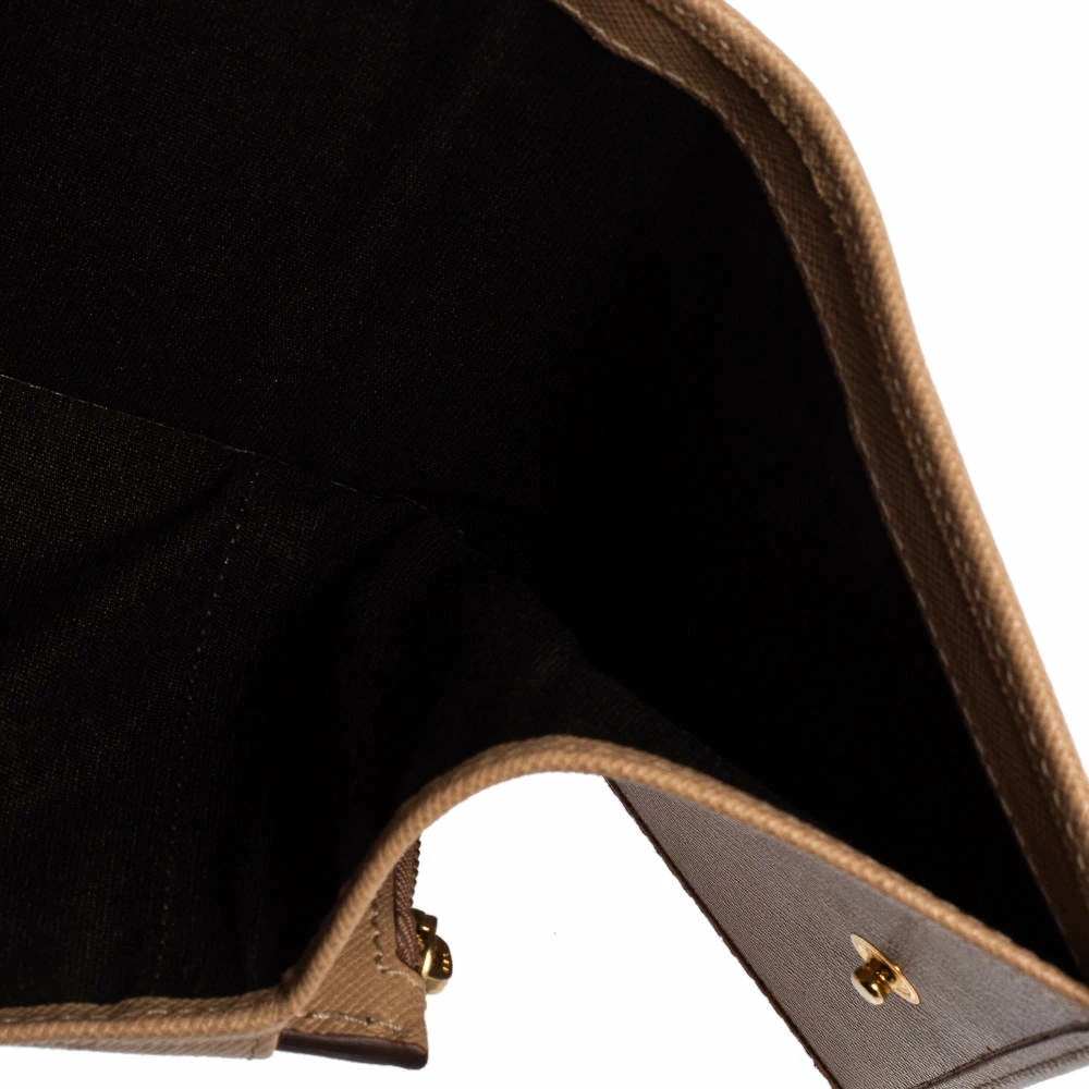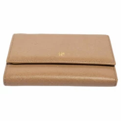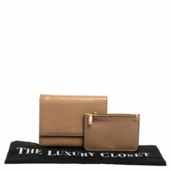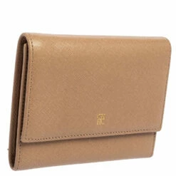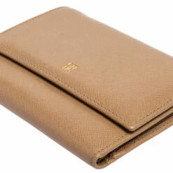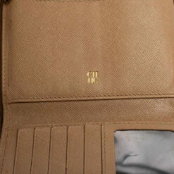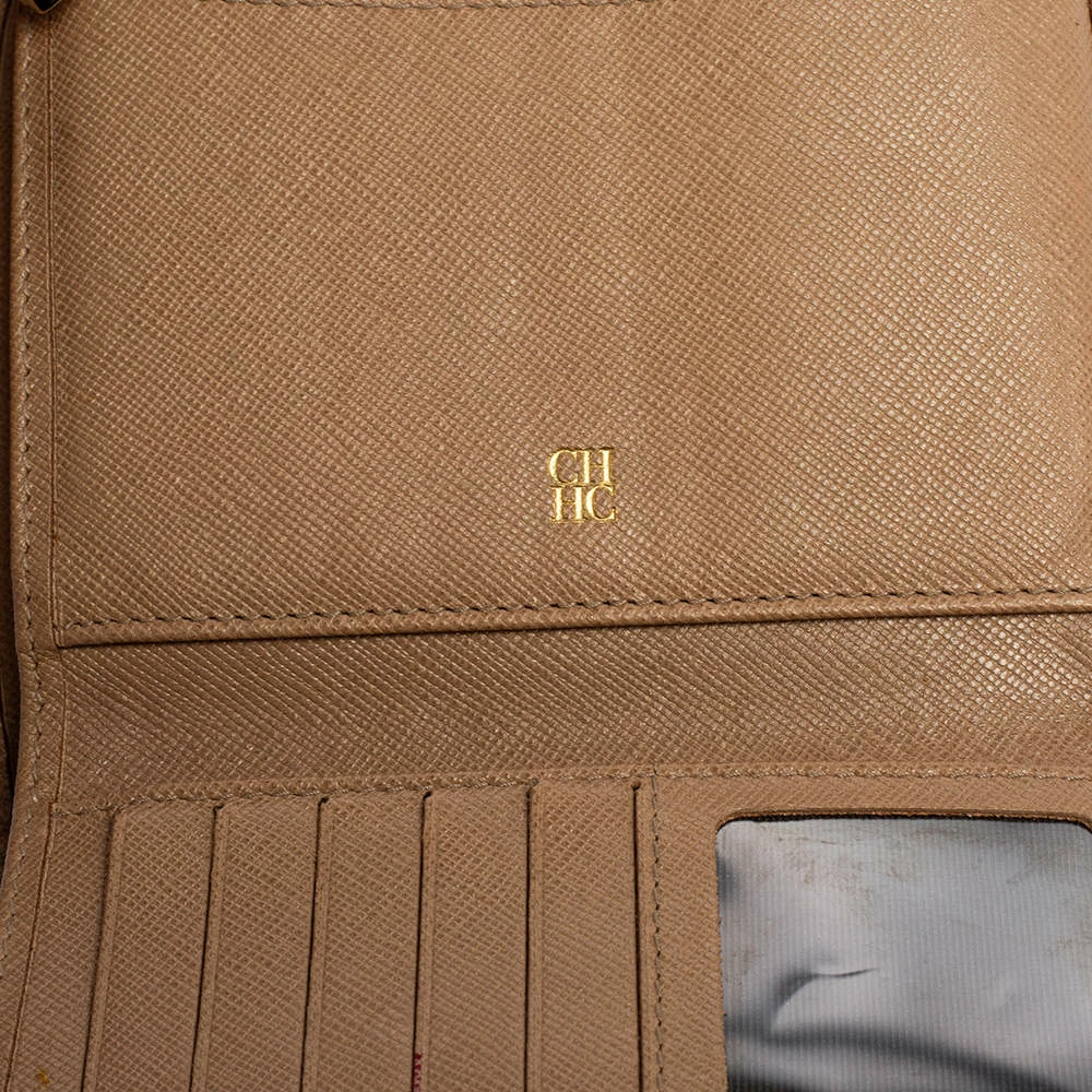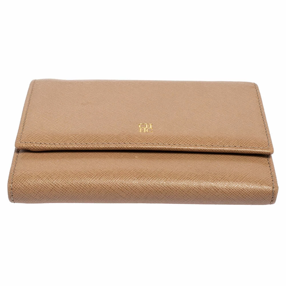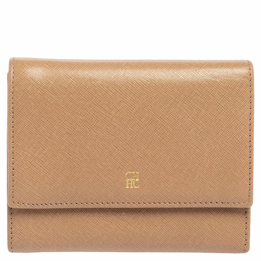 Packed with functional features of multiple slots and bill compartments, the Carolina Herrera trifold wallet is crafted using beige leather with a logo detail at the front flap.