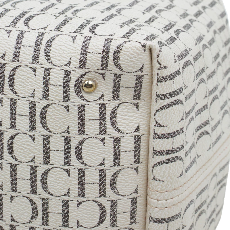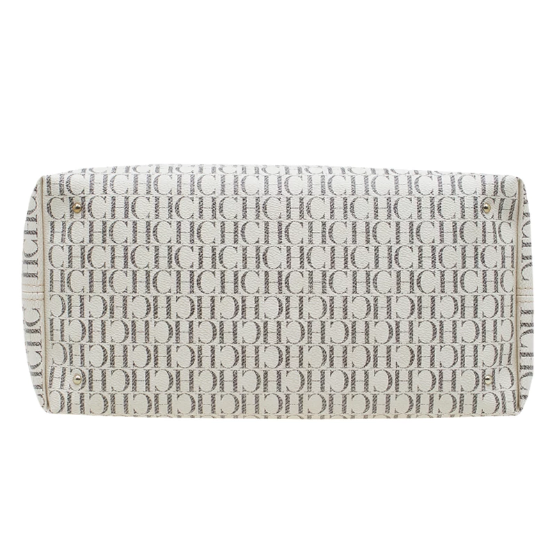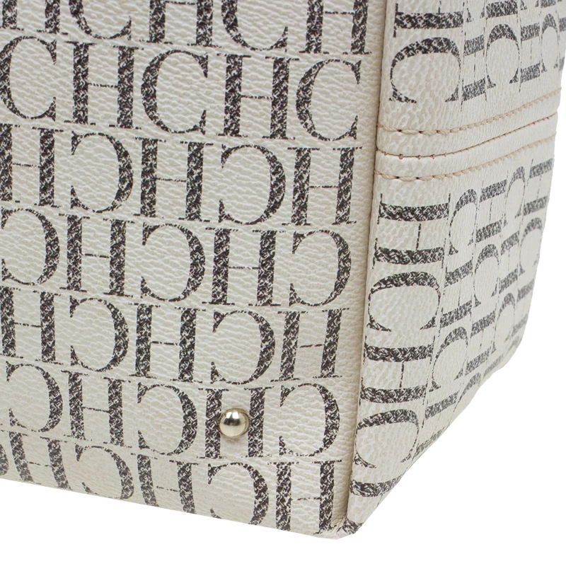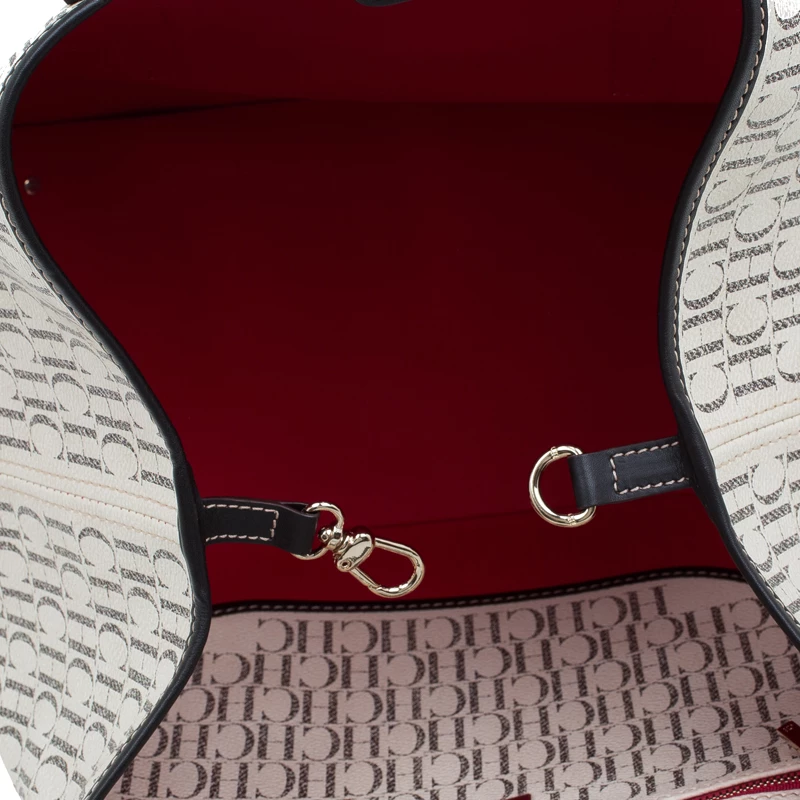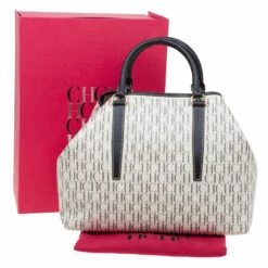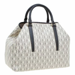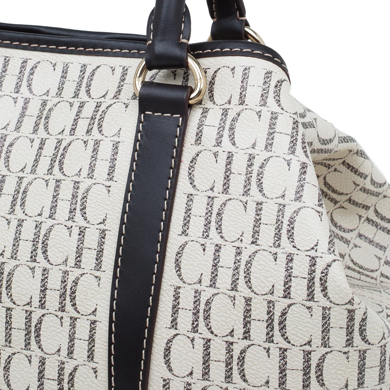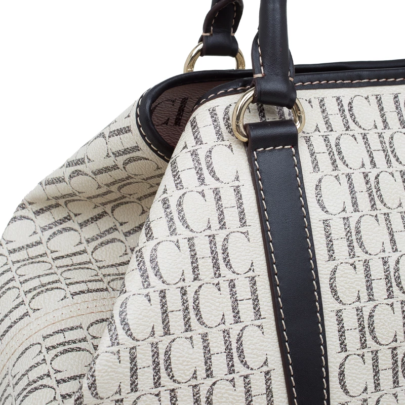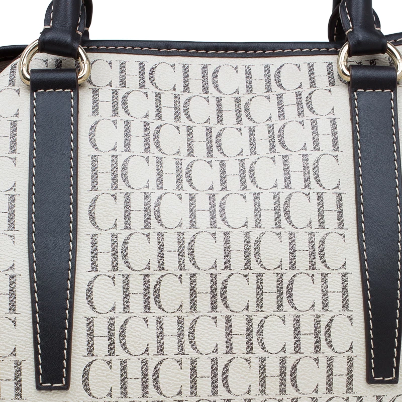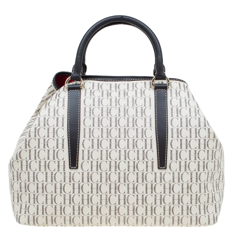 By Carolina Herrera, this tote will win you a sumptuous look to carry. Crafted from monogrammed coated canvas and leather, it features two handles and reveals a canvas lined interior. This tote houses a zipper pocket and carries brand labeling. It is accented with gold-tone detailing and counters four protective feet.