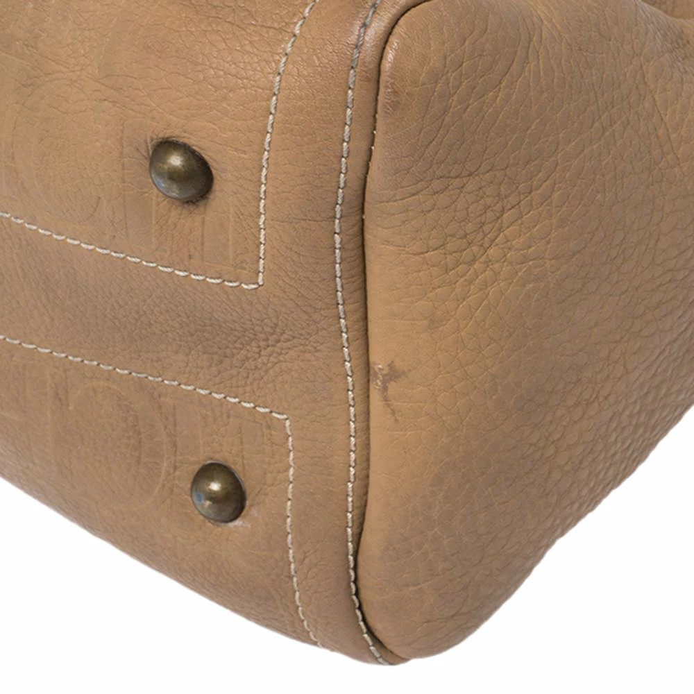 A truly elegant piece to add to your collection, this Andy Boston bag by Carolina Herrera comes crafted from beige monogram leather and styled with neat stitch detailing. It features a top zip closure, two handles, protective metal feet, and a spacious interior to house your essentials. This bag is a creation for all occasions.