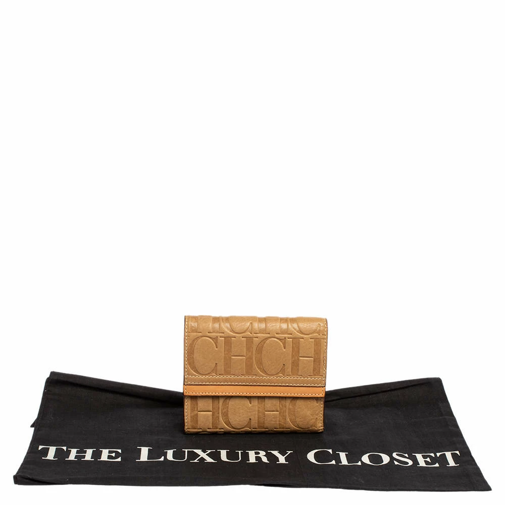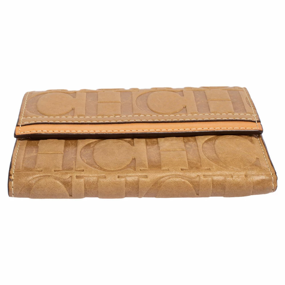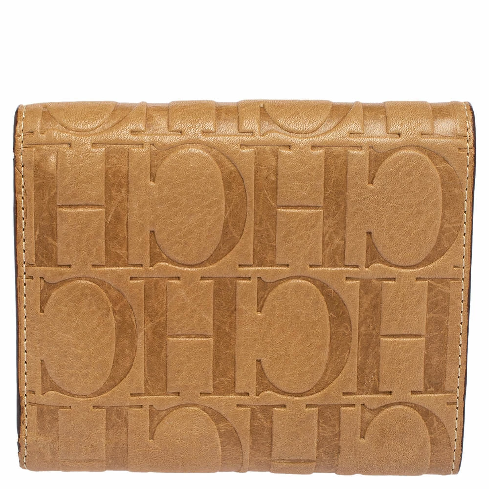 Carry this functional wallet Carolina Herrera in any one of your chic handbags. This compact-style wallet is made from CH embossed leather. The fabric and leather-lined interior that has many credit card slots and one bill pocket will easily keep your daily essentials organized.
