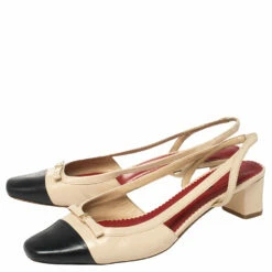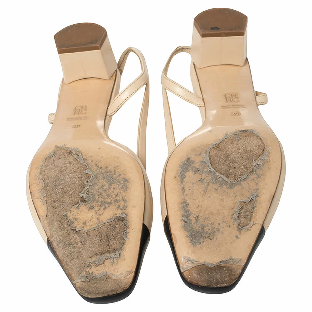 Treat your feet to this gorgeous pair of sandals from Carolina Herrera. Crafted from navy blue and beige leather, this pair features bow details over square toes, low block heels, and buckle slingbacks. The insoles are lined with leather to offer maximum ease. This impressive pair of sandals are a wonderful style statement.