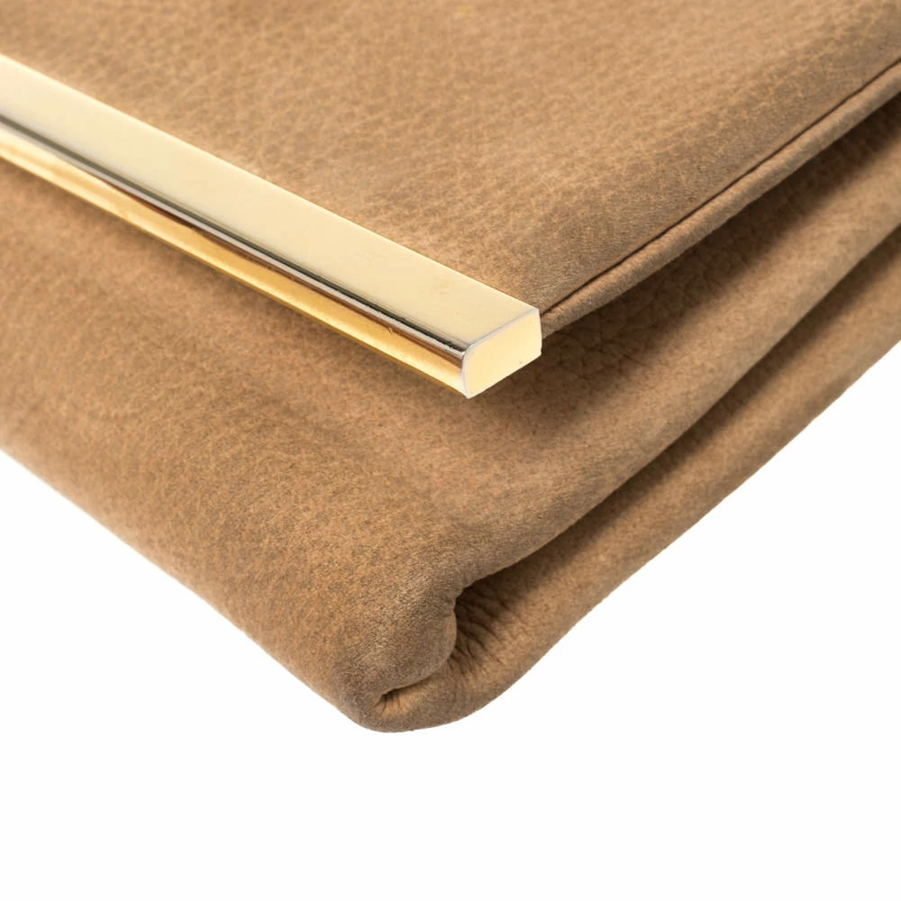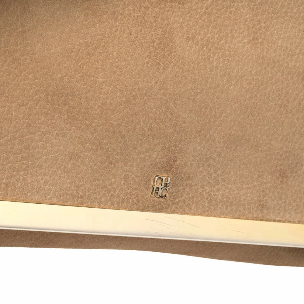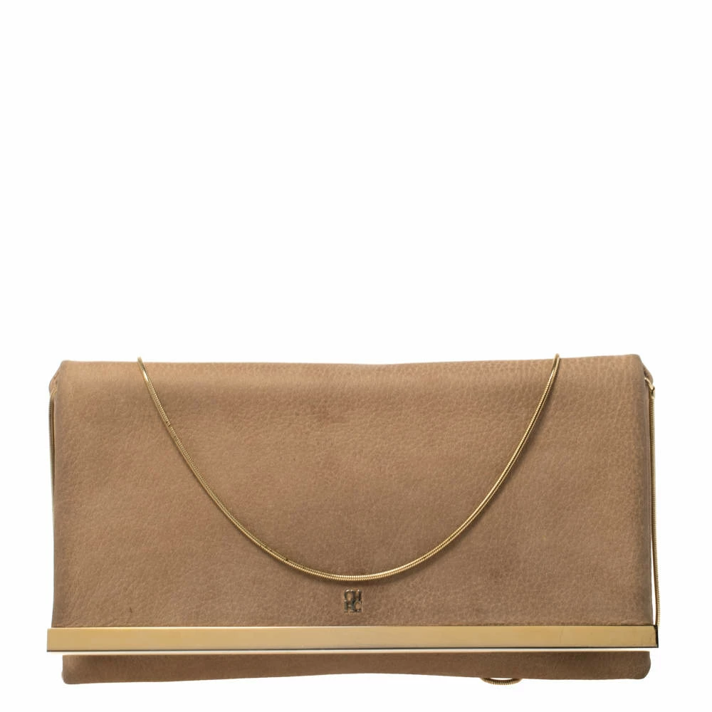 This clutch by Carolina Herrera is one you will love carrying around. It is captivating and stylish. The clutch is made from beige Nubuck leather, and it features a front flap detailed with a gold-tone metal bar. The interior is lined with fabric, and the clutch is finished with a shoulder chain.