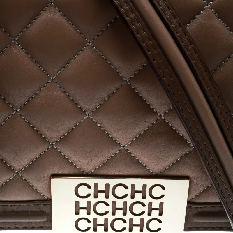 This fabulous bag from Carolina Herrera is all set to make you fall in love with it! The brown creation is crafted from leather and features a quilted pattern on the exterior. It flaunts a front flap closure with a gold-tone “CHCH’ logo plaque and a dangling tassel accent. It comes equipped with a chain-link and leather shoulder strap and opens to a fabric lined spacious interior capable enough of carrying all your daily essentials.