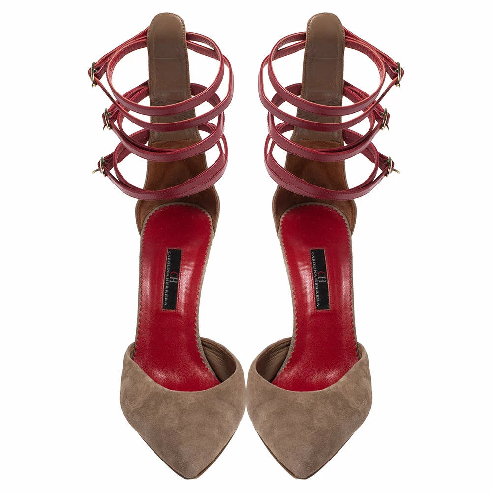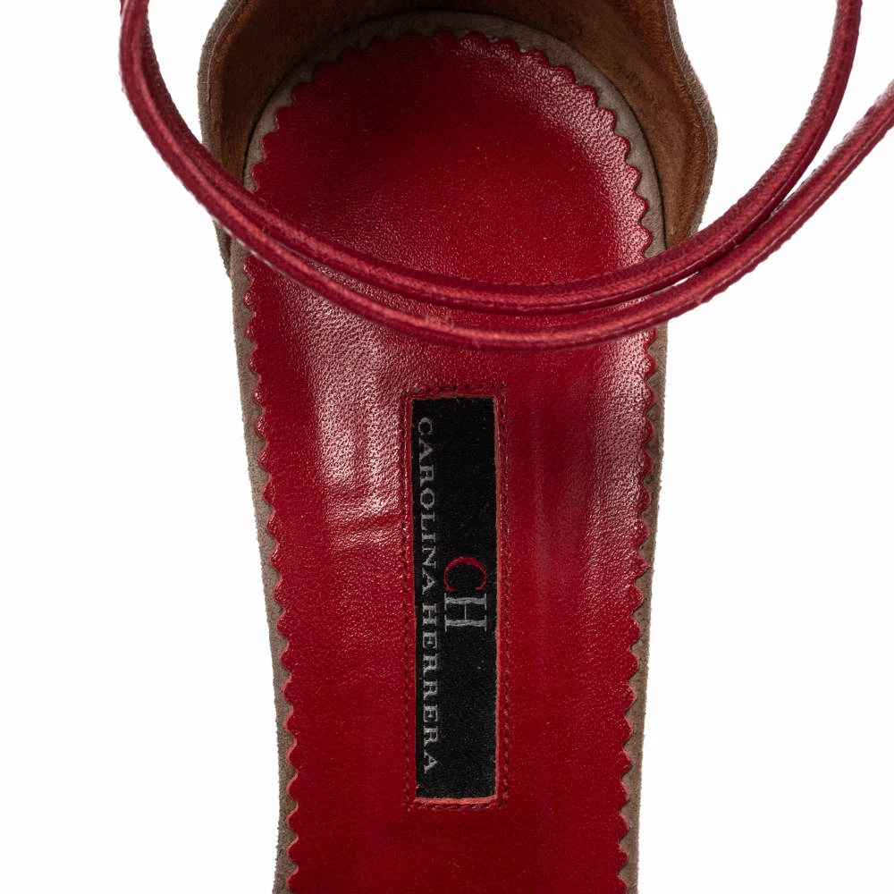Flaunt these fabulous sandals from Carolina Herrera with confidence. These suede and leather sandals are a high-end fashion pair that will complement a variety of outfits. They feature pointed toes, triple buckle straps and slim heels.