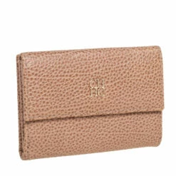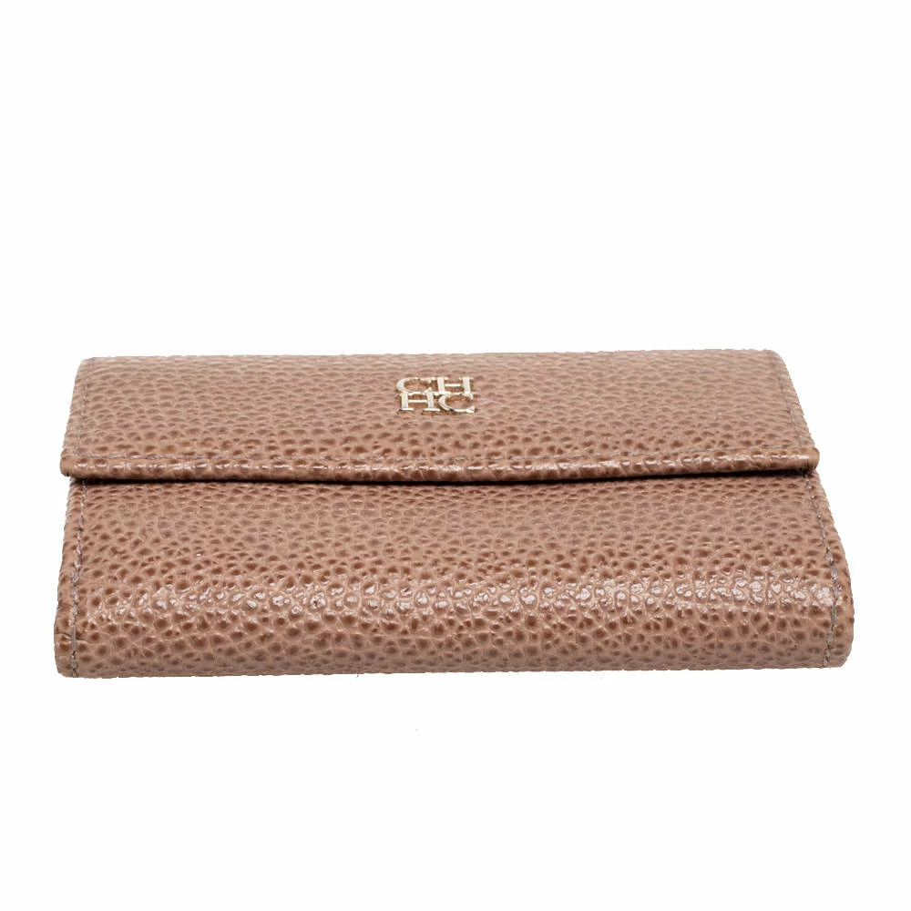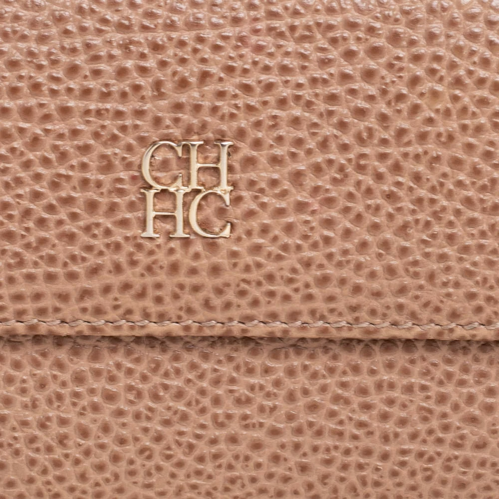 Crafted using beige textured leather, this wallet from Carolina Herrera features the signature CH logo at the front and comes with lined slots. It can easily hold your cards and cash in an organized manner. Slip it into your everyday tote.