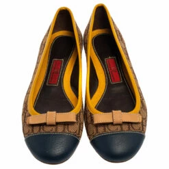 These casual flats from Carolina Herrera are funky and stylish, designed just for the fashionista in you. A perfect blend of comfort and style, these flats are crafted from monogram canvas & leather with a bow on the round-toed vamps. These dainty beige & yellow flats will look elegant with any ensemble and are designed just for you.