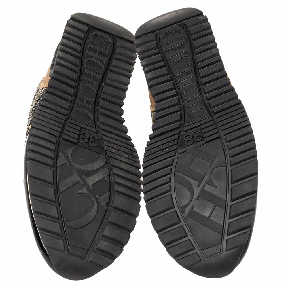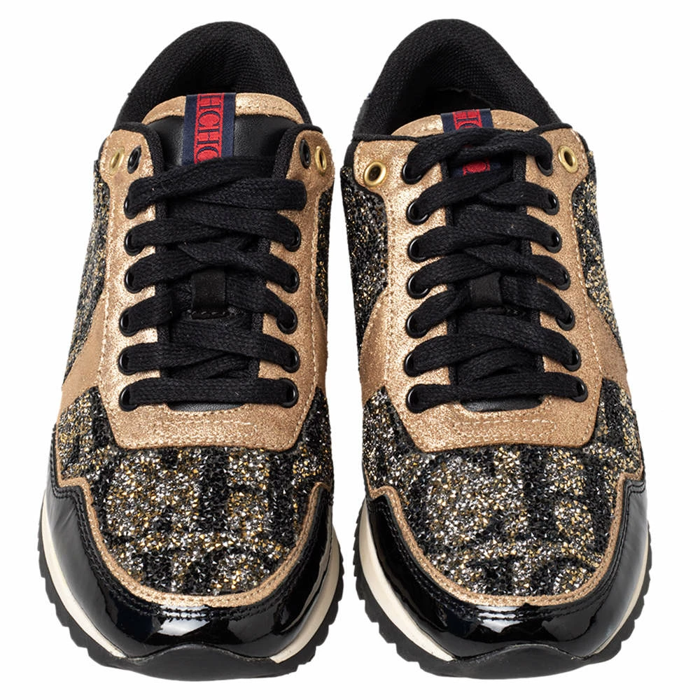 This pair of sneakers from Carolina Herrera is crafted from the finest mix of patent leather, suede, and leather with signature prints all over. These multicolored sneakers, complete with fabric insoles and rubber soles are a must-have for your casual wardrobe.