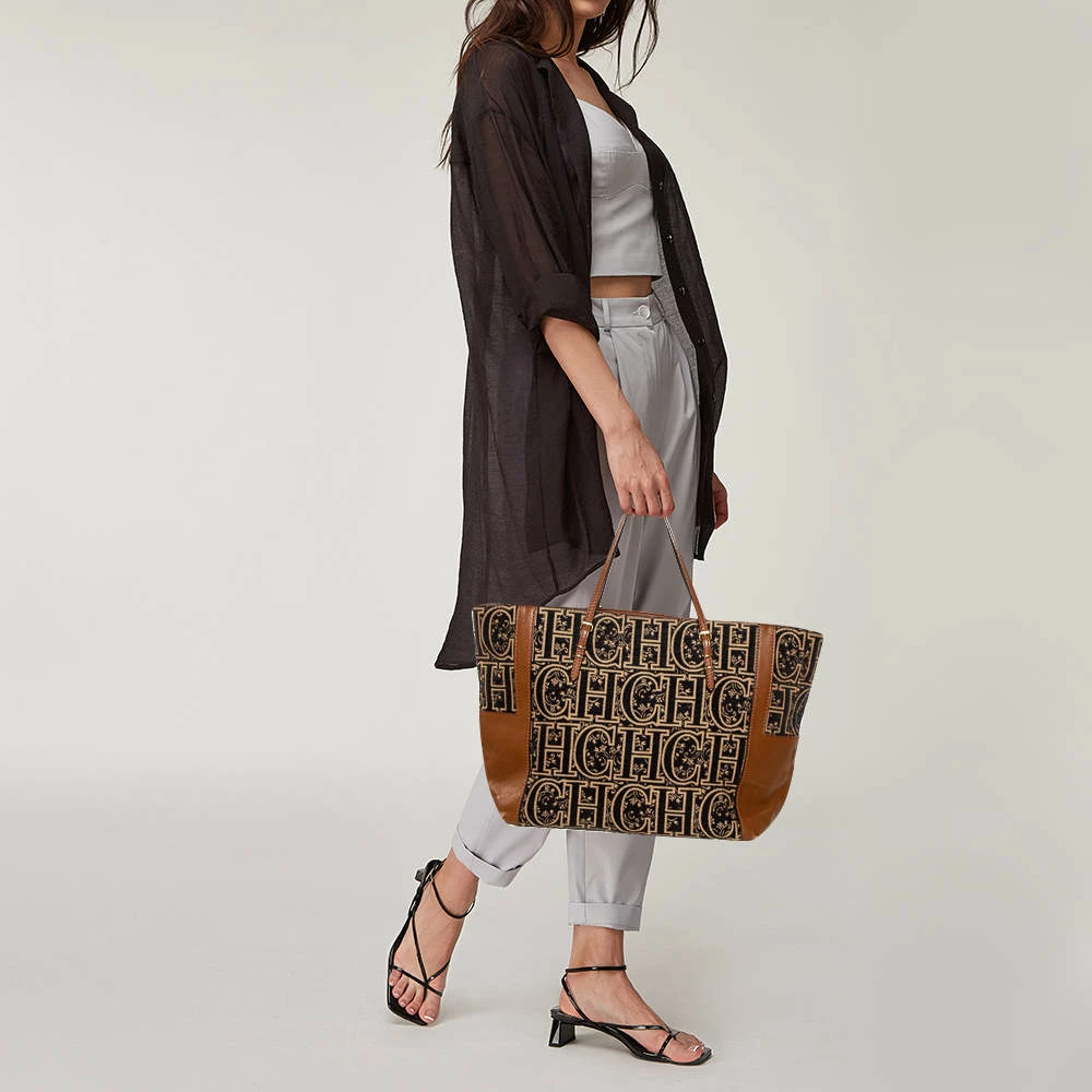 This beautifully stitched signature velvet and leather tote is by Carolina Herrera. With a capacious canvas-lined interior, it will house more than your essentials. Boasting two handles and a seamless finish, this tote offers style and utmost practicality.