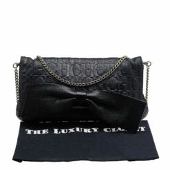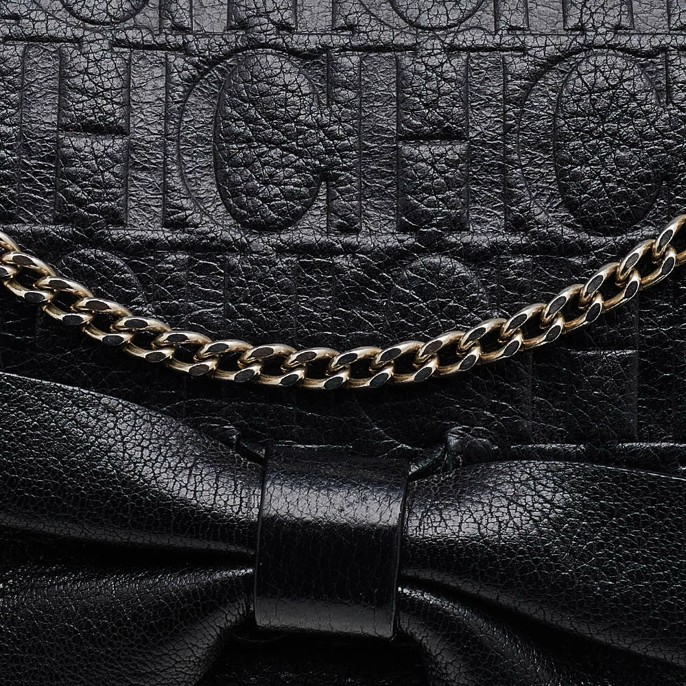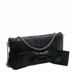 Shoulder bags as pretty as this one by Carolina Herrera are not creations you find every day. That’s why this bag is worthy of a place in your closet. It has been crafted from black embossed leather and styled with a bow-adorned flap that leads to a well-sized interior. It is held by a slender chain link.