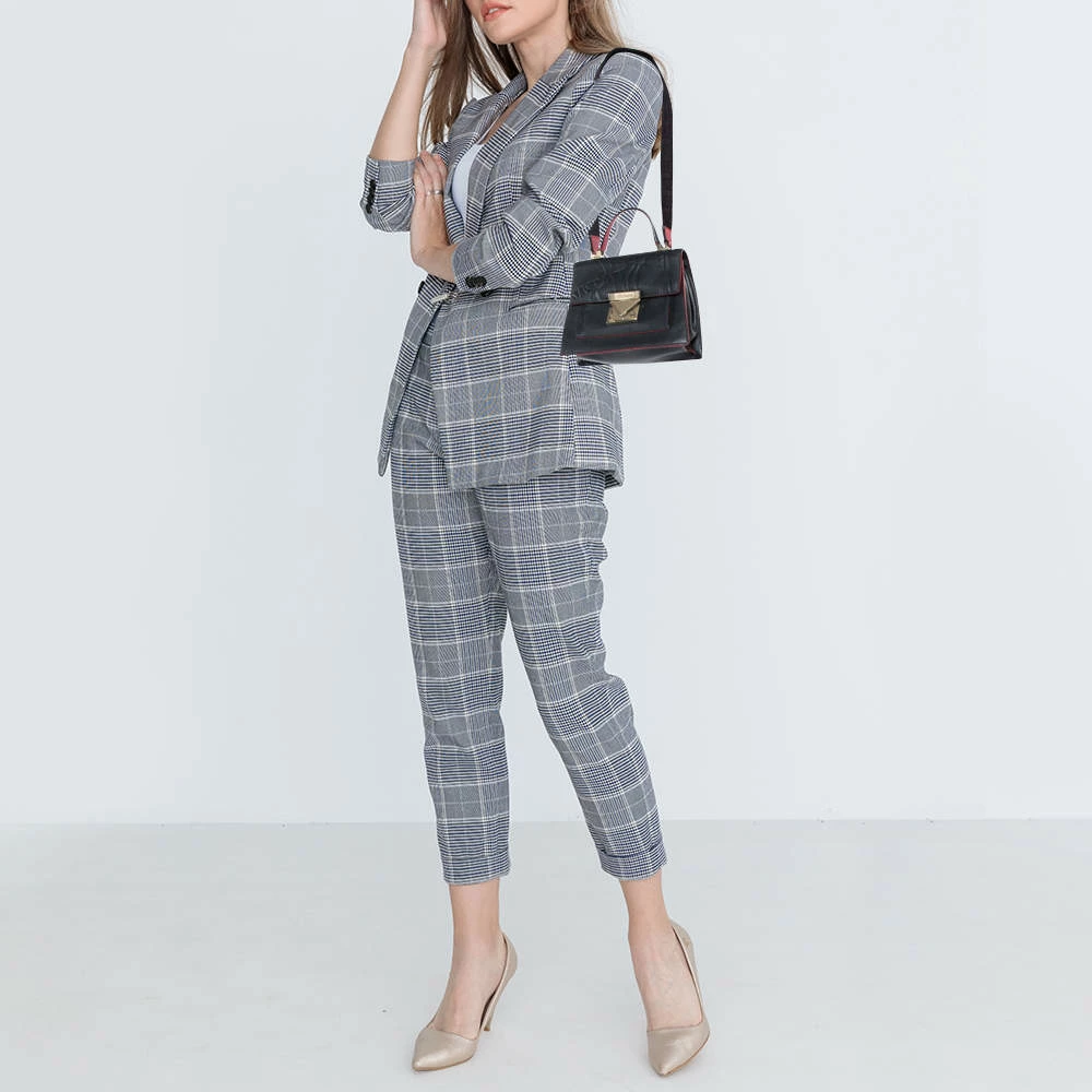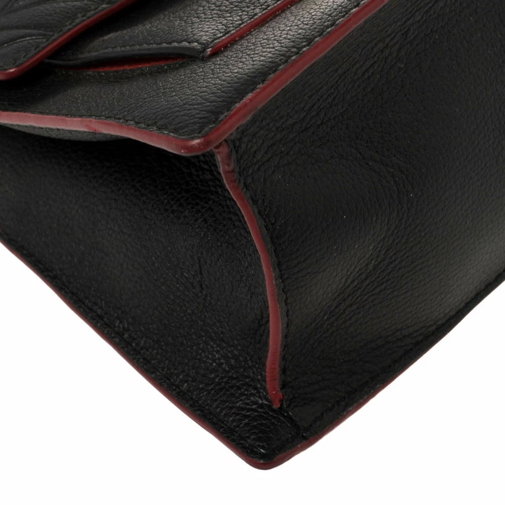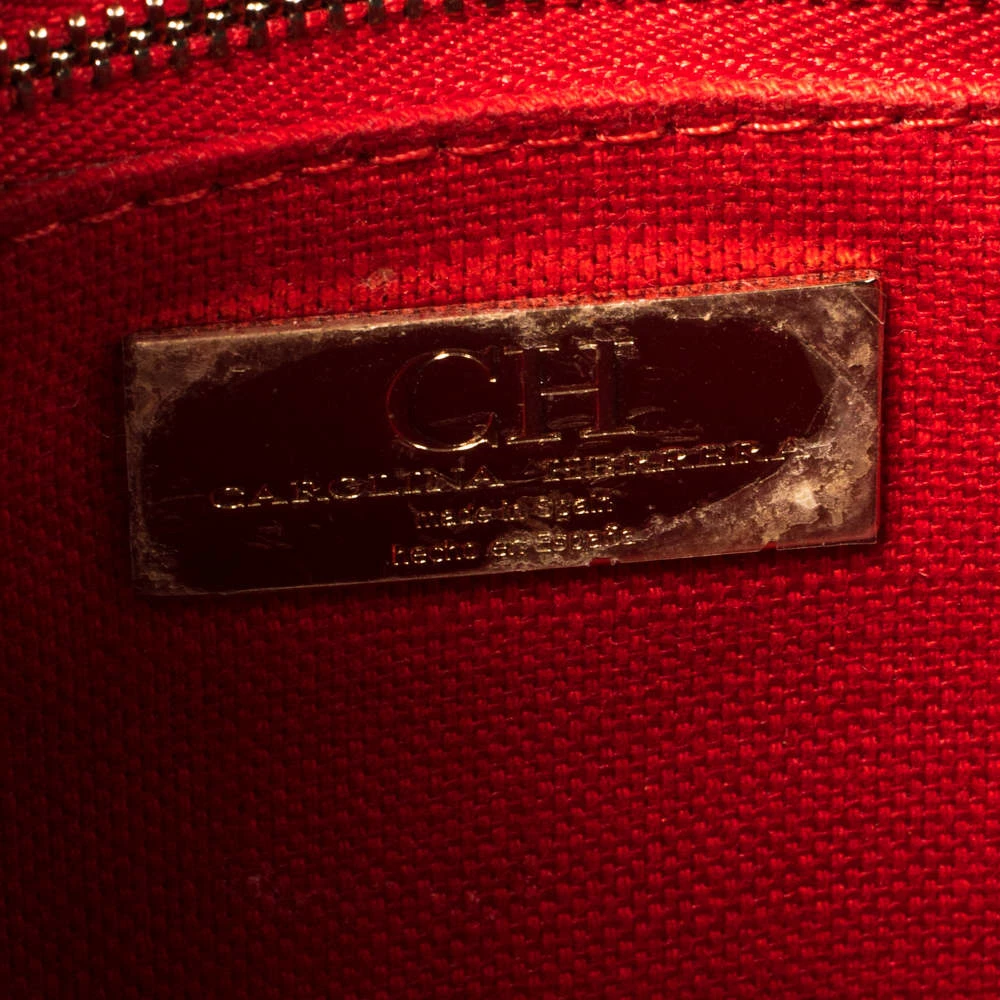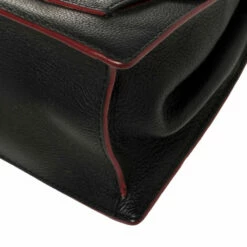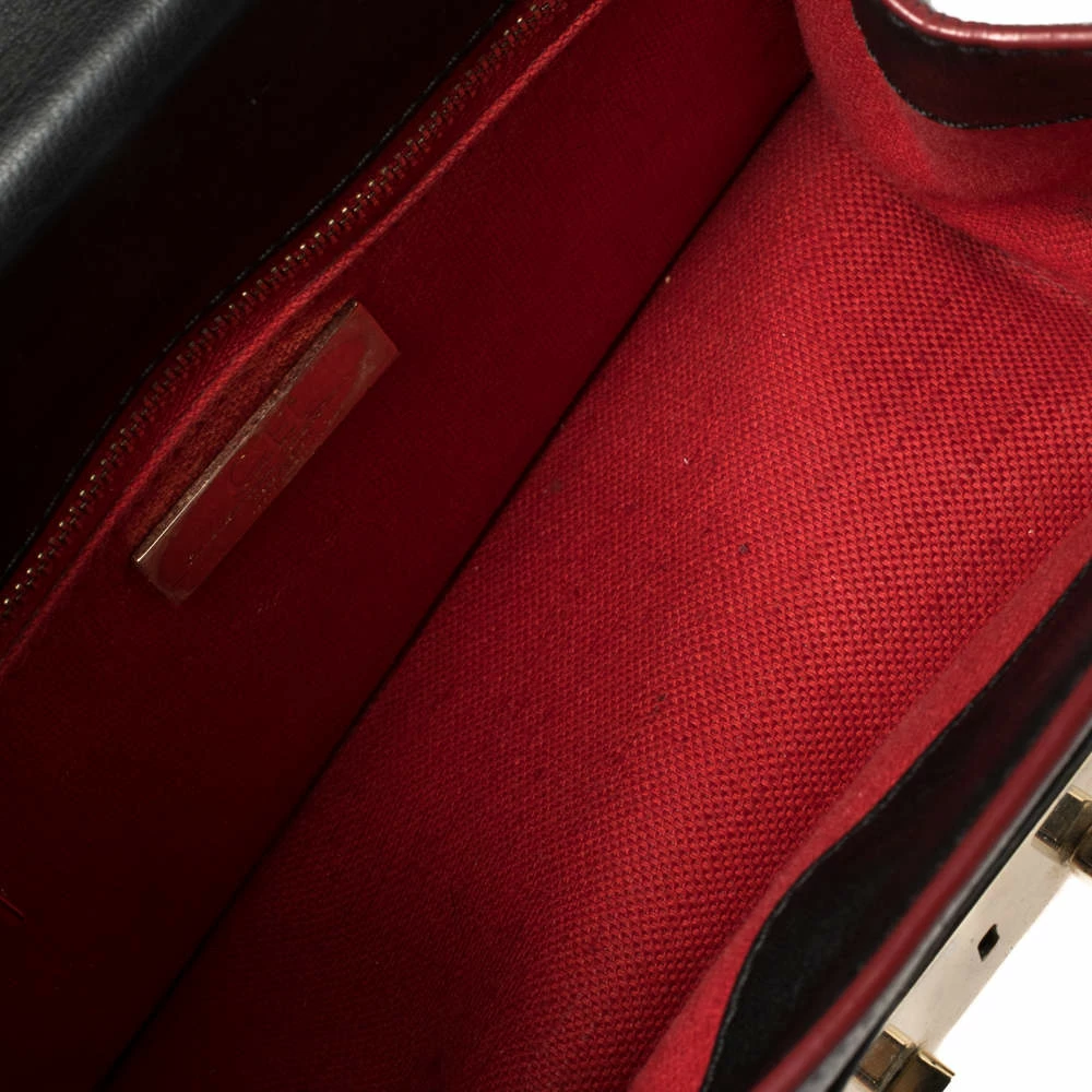This stylish bag is perfect for day and night ensembles. Carolina Herrera has crafted this bag from leather in a black hue. It has logo embossing on the exterior, a front flap with a push lock fastening, a top handle, a compact interior, and gold-tone hardware.