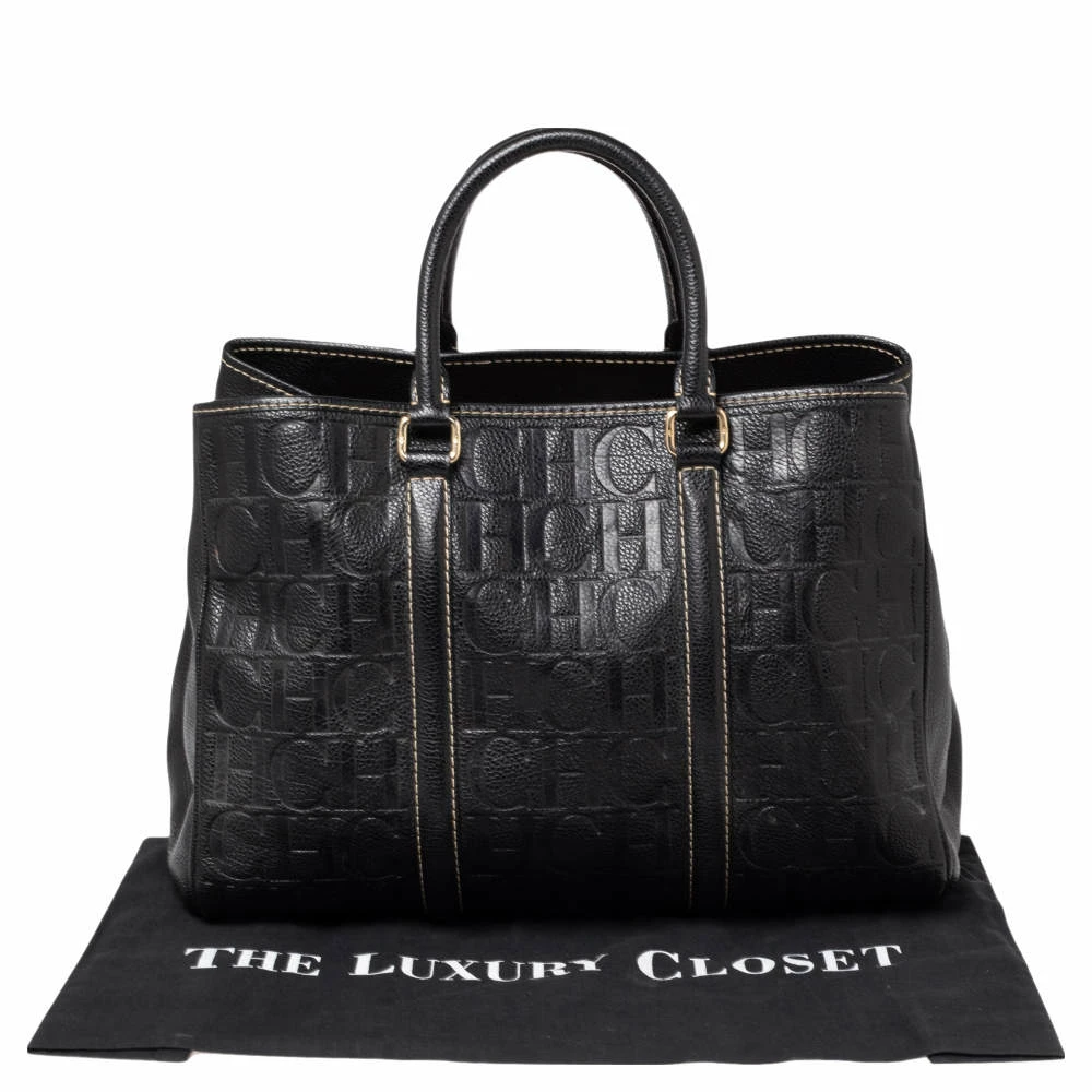 A truly elegant piece to add to your collection, this Andy tote by Carolina Herrera comes crafted from black leather and styled with monogram detailing all over. It features an open-top, two handles, protective metal feet, and a spacious interior to house your essentials. This bag is a creation for all occasions.