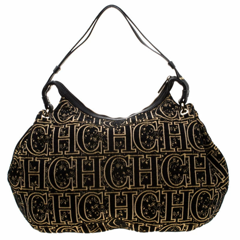 Spacious interiors lined with fabric promise standard without any compromise. Made in monogram velvet and leather, it is an investment. This attractive Carolina Herrera piece is spacious and excellently made to assist your style.