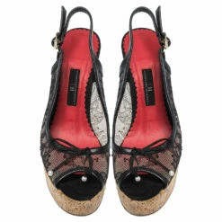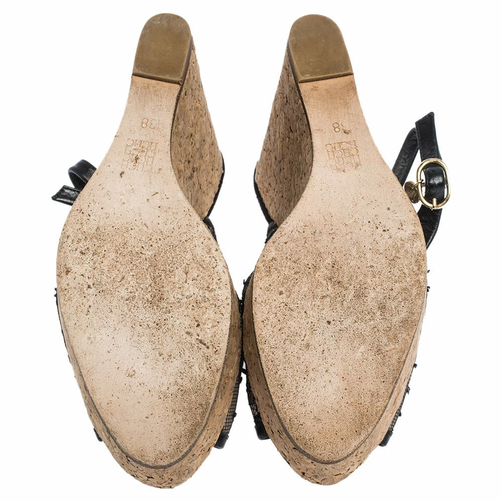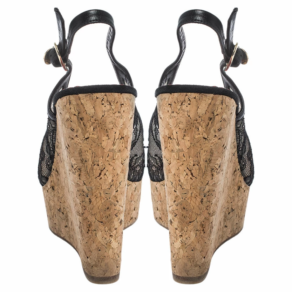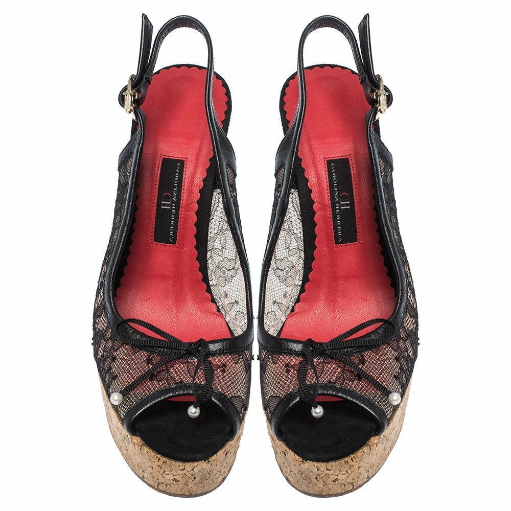 Sing the tune of the season with this gorgeous pair of sandals from Carolina Herrera. They are crafted from black lace and leather. Peep-toes, buckle fastening and wedge heels make the sandals ready to be worn by you.