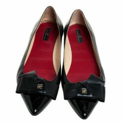 Beautiful and sophisticated, these ballet flats from Carolina Herrera will prove to be a perfect alternative to your party heels. Rendered in black leather, the pair is styled with pointed toes featuring gold-tone logo-detailed bows. Complete with durable soles, team them with your flowy skirts for a pretty look.