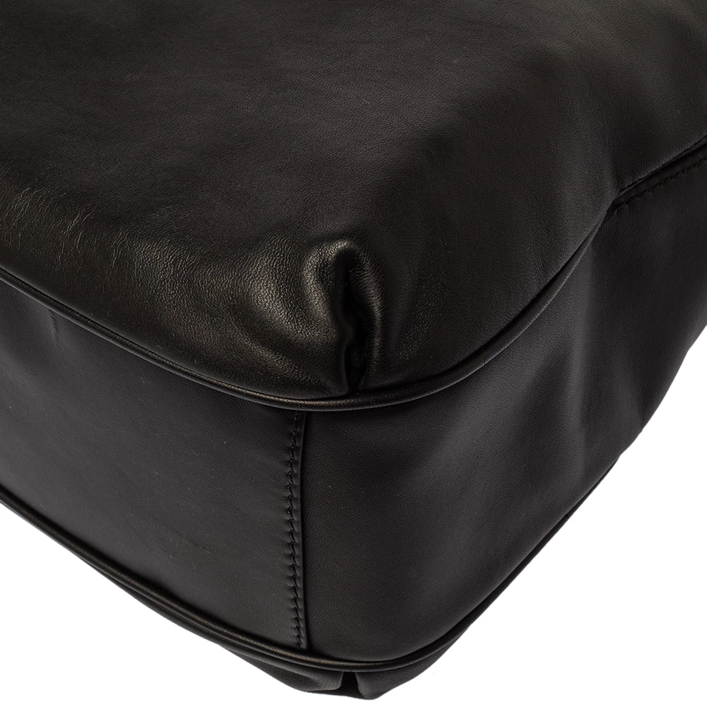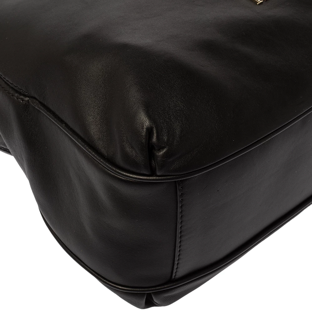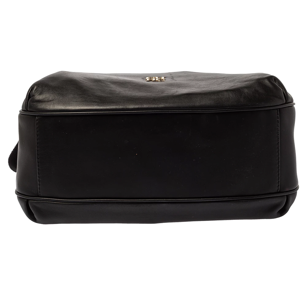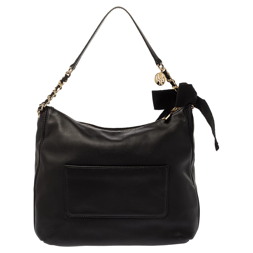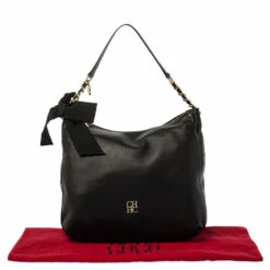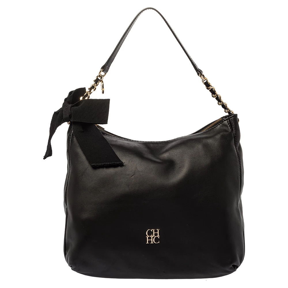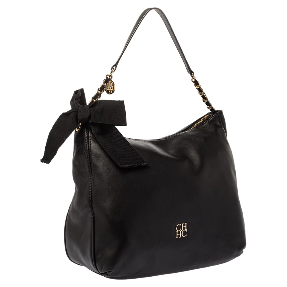 Experience the high fashion touch and an aura of regality with this immaculately designed Carolina Herrera hobo. Crafted from fine black leather, the interior is spaciously lined with fabric, and the bag flaunts a bow detailing. The handle is woven with a gold-tone chain, and a top zip closure completes this fabulous piece.