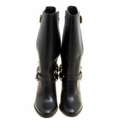 It’s time to rock all your outings with these chic and smart calf boots from Carolina Herrera that exude oodles of style. These black boots are crafted from leather and flaunt pointed toes, leather lined insoles and a 10 cm block heel. Pair these beauties with rolled up denims, a ruffled top and a pendant necklace to make a fashion statement.