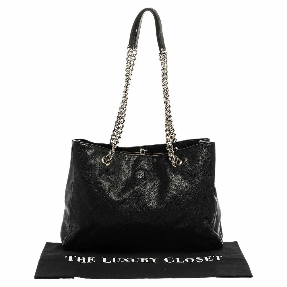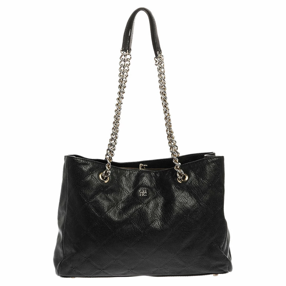 Get set to grab a lot of compliments every time you carry this shopper tote from Carolina Herrera! The black creation is crafted from leather and features a quilted pattern on the exterior. It flaunts dual handle straps and the brand logo at the front. It opens to a spacious fabric-lined interior that can easily hold all your daily essentials and the bag also comes equipped with protective metal feet. It is one piece that definitely needs to be on your wishlist!