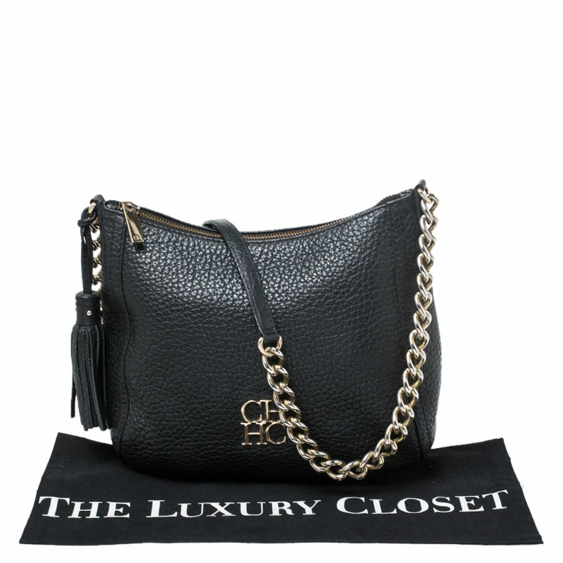 Designed in a versatile black shade, this Carolina Herrera bag will go with all your ensembles. It features a leather body secured with a top zipper closure. This bag comes fitted with a chain shoulder strap and can easily hold your day to day essentials in the fabric-lined interior.