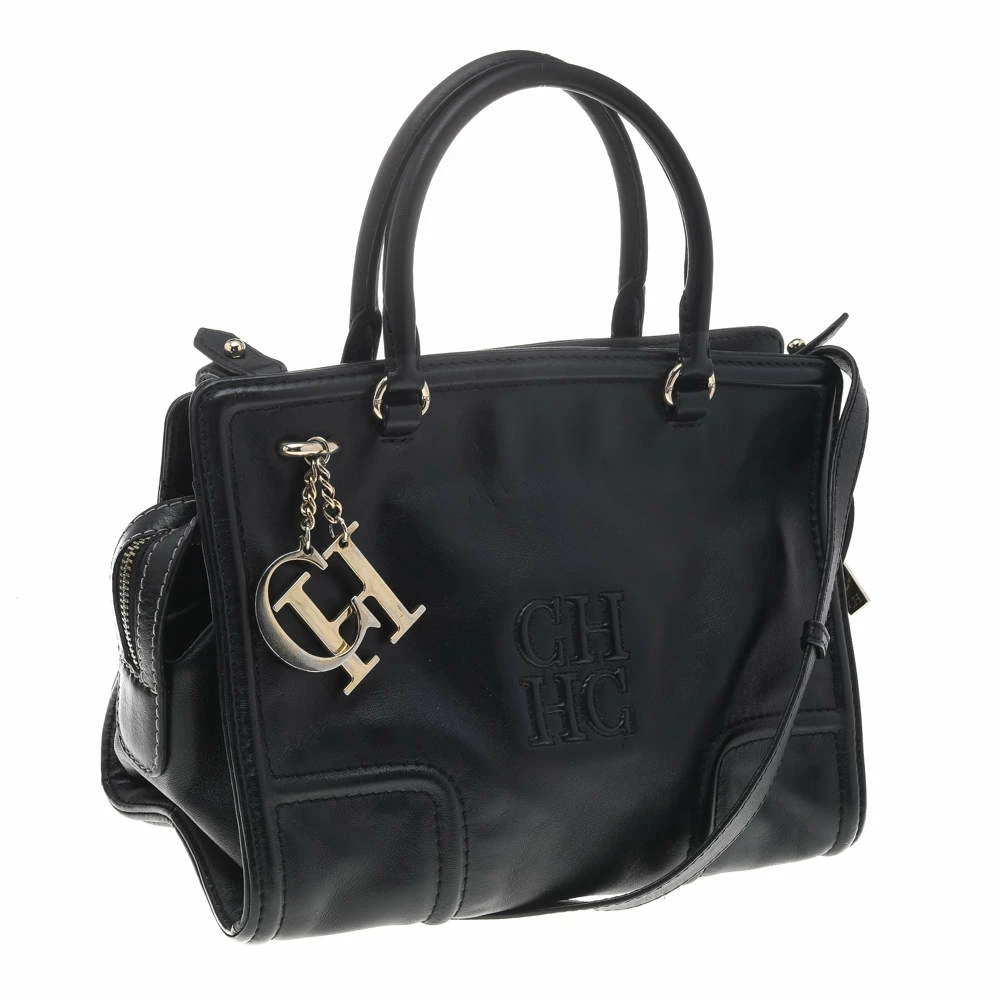 This CHCH logo tote from Carolina Herrera is a must-have for all the fashionistas. With its black shade and structured shape, the leather bag is versatile and will match well with any outfit. Two top handles and a shoulder strap make it an effortless piece to carry.