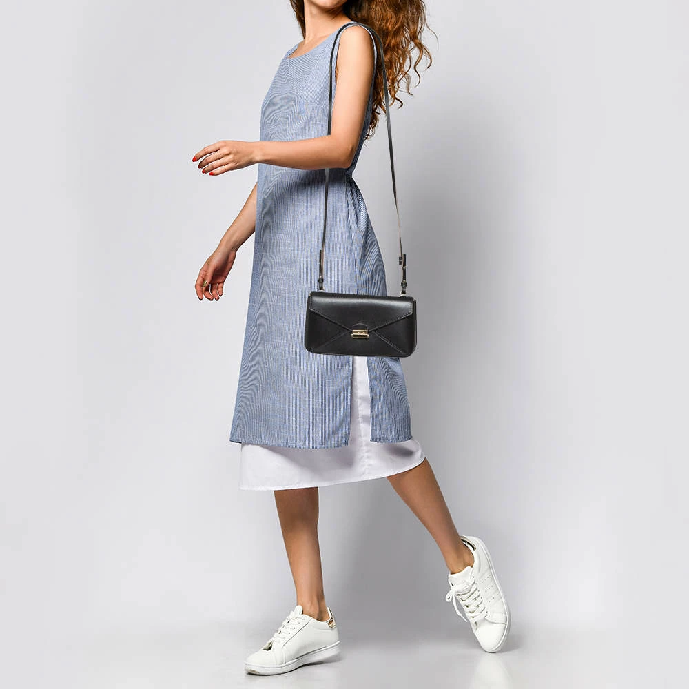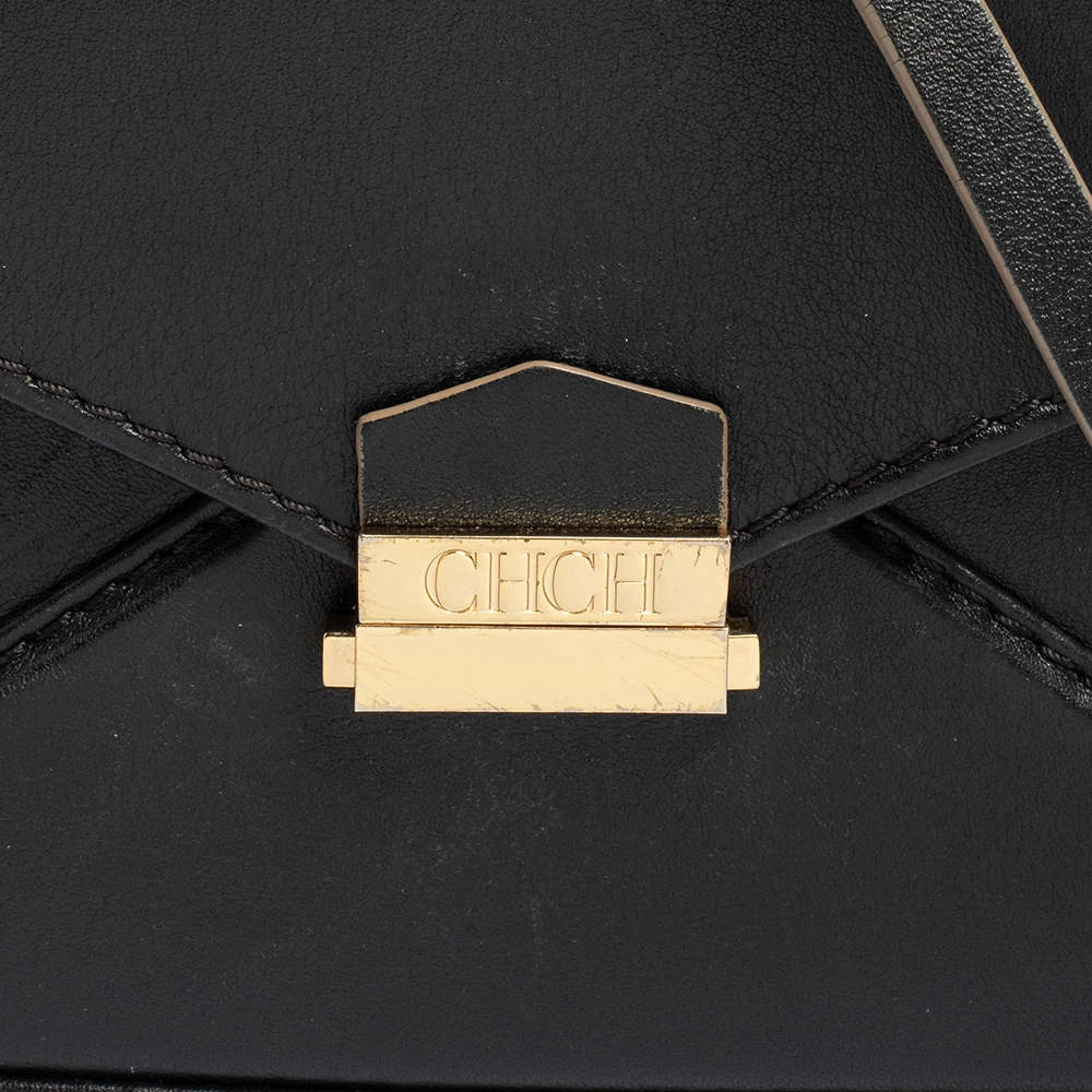 Elevate your outfits with this black-hued bag by Carolina Herrera. It is crafted in leather and features a logo-detailed lock in gold-tone metal on the front flap. The stunning creation has a canvas-lined interior with a zip pocket and is held by a shoulder strap.