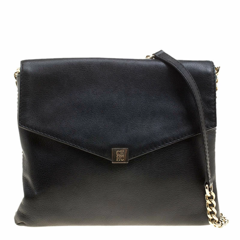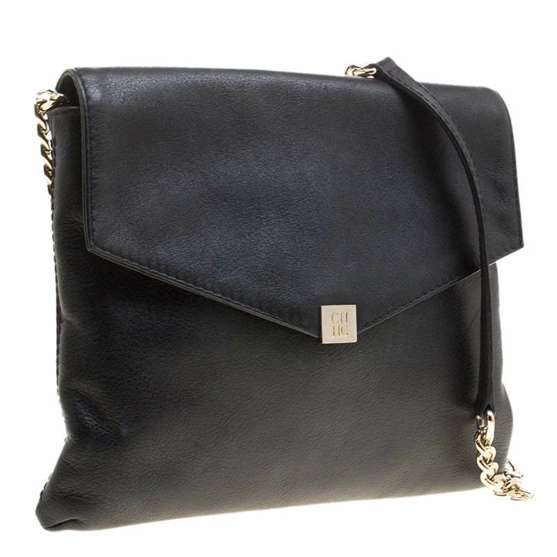 This Envelope shoulder bag from Carolina Herrera has been crafted from leather and lined with fabric on the insides. It has the famous CH on the flap and a shoulder chain for you to easily parade it. This bag is not only high in style but also in durability.